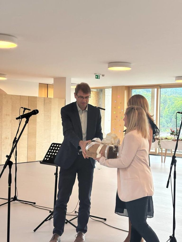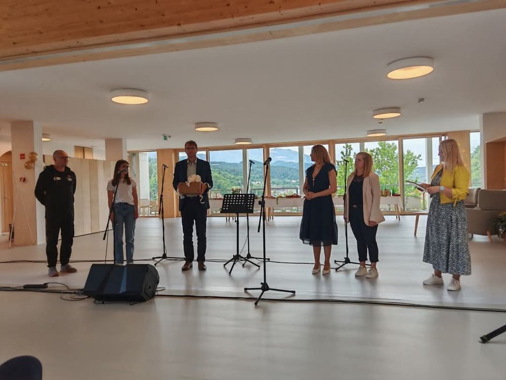 16. maja smo praznovali 1. obletnico, 1. »rojstni dan« Centra starejših KORA. Na slovesnosti so se zbrali številni stanovalci, zaposleni, sorodniki ter prijatelji, poslanca v DZ RS Jani Prednik in poslanka Alenka Helbl, da obeležimo pomemben mejnik naše skupnosti. Dogodek se je začel s pesmimi v izvedbi zbora stanovalcev in zaposlenih pod vodstvom profesorice Maje Ocepek s kitaristkama. Uvodni pozdrav je podala vodja enote KORA Maja Pučelj Brunec, ki je poudarila pomen druženja in skupnosti v domu. V imenu Centra KORA je direktorica Koroškega doma starostnikov Črneče, Katja Pavlinič Šoba, izpostavila uspehe prvega leta delovanja, vključno z nagrado OHS Award 2025, ki jo je center prejel na Festivalu odprtih hiš Slovenije. Arheologinja Saša Đura Jelenko je predstavila nedavne arheološke najdbe v okolici ter pomembno sodelovanje s Koroškim pokrajinskim muzejem. Sledili sta pesmi mladinskega pevskega zbora, OŠ Koroški jeklarji, pod vodstvom Saše Voler, ki so ob solistki Neži Rupreht in renomirani glasbenici Dunji Vrhovnik prispevali k slovesnemu vzdušju. Praznik je dodatno polepšalo darilo v obliki neprecenljive opreme, ki rešuje življenje. Župan Občine Ravne na Koroškem dr. Tomaž Rožen je ob prvem praznovanju težko pričakovane KORE namenu predal avtomatski defibrilator, ki ga je doniralo društvo AED (neprofitna organizacija s statusom v javnem interesu na področju zdravstvenega varstva, s strani Ministrstva za zdravje), na pobudo neumornega skrbnika mreže AED na Koroškem Petra Kordeža, člana strokovne skupine Koronarnega kluba Mežiške doline, ki skrbi za mrežo javno dostopnih avtomatskih defibrilatorjev (AED) na Koroškem ter usposabljanje laikov v temeljnih postopkih oživljanja (TPO) z uporabo AED.