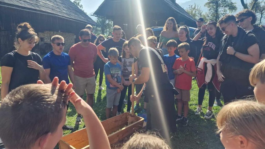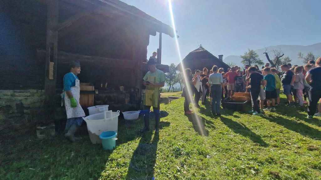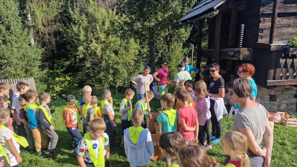 Delavnico prešanja so tudi letos izvedli člani Sadjarskega društva Mežiške doline in obiskovalcem pokazali stari način pridobivanja mošta s predhodnim točenjem jabolk ter stiskanjem soka na leseni preši. Pri tem jesenskem opravilu so se jim pridružili in jim pomagali še učenci iz POŠ Kotlje in OŠ Koroški jeklarji in skupina študentov Erasmus+ iz Slovenije, Srbije, Grčije, Latvije in Portugalske.