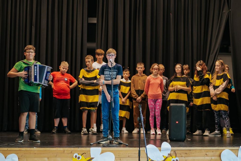Ob otvoritvi Ravenske čebelarske poti je v večnamenski dvorani v Kotljah potekal kratek kulturni program, ki so ga pripravili učenke in učenci OŠ Juričevega Drejčka, Vrtec Ravne – enota Levi devžej Kotlje, Podružnična osnovna šola Kotlje. Na prireditvi smo prisluhnili predsedniku Koroške zveze čebelarjev Dragu Borku, predstavniku Skupine SIJ, svetovalcu glavnega direktorja SIJ Metal Ravne Borutu Urnautu ter podžupanu Občine Ravne na Koroškem Andreju Erjavcu. Program je povezovala Danica Hudrap.