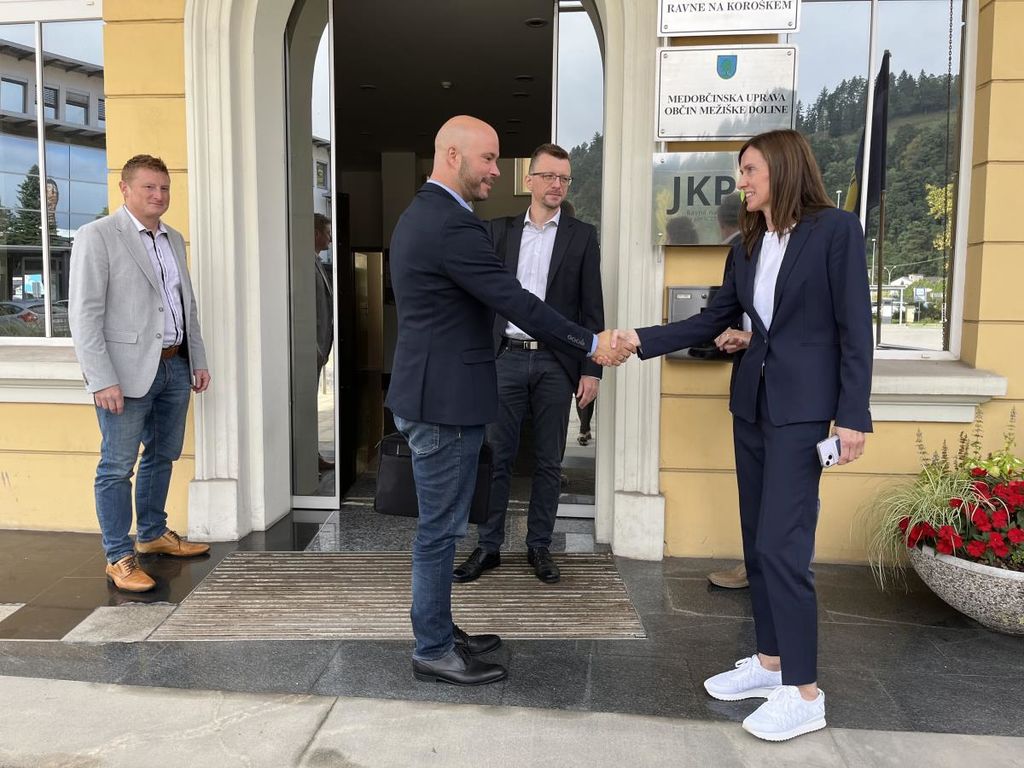 V sredo, 27. septembra 2023, sta minister za kohezijo in regionalni razvoj, dr. Aleksander Jevšek ter državni sekretar na ministrstvu za gospodarstvo, podjetništvo, razvojna sredstva in turizem, Matevž Frangež, opravila pomemben obisk v občini Ravne na Koroškem. Goste so sprejeli predstavniki naše lokalne skupnosti, vključno s podžupanoma Andrejem Erjavcem in Petrom Stočkom, direktorico OU mag. Vlasto Kupljen, ob prihodu je gostom pozdrav namenil tudi župan Občine Ravne na Koroškem dr. Tomaž Rožen.