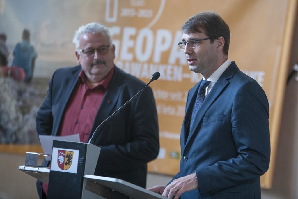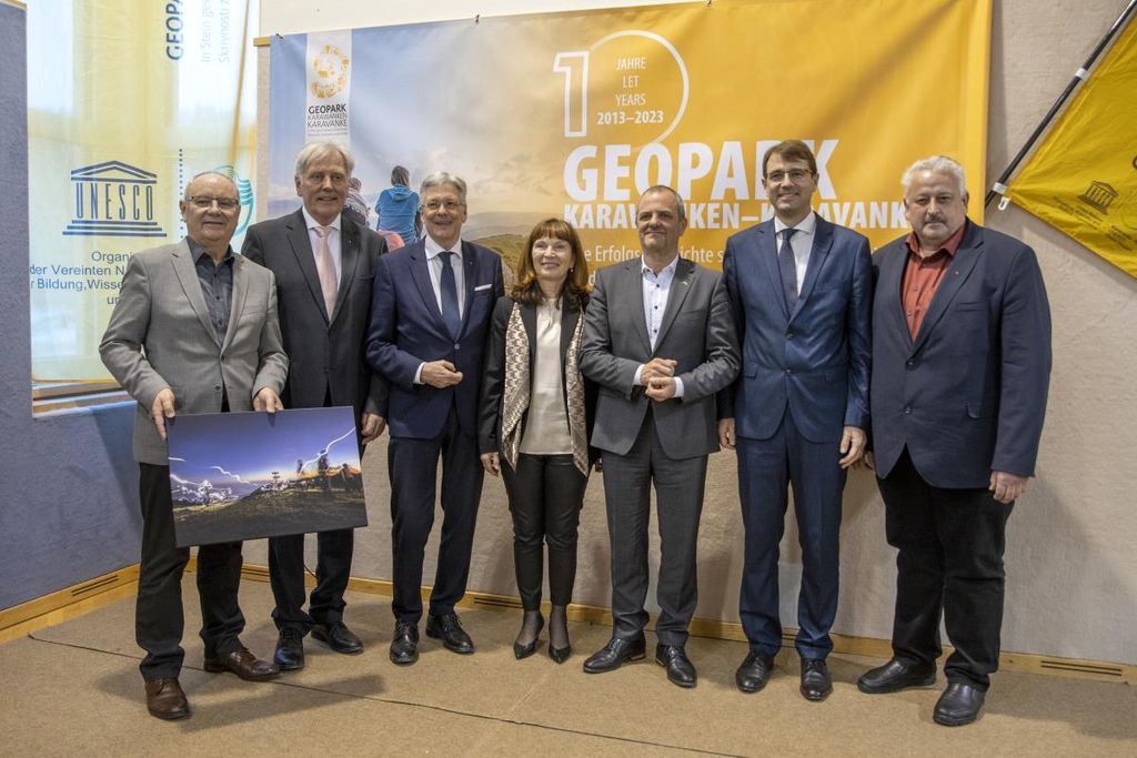 Novinarske konference, ki je bila namenjena predstavitvi dosežkov pretekle uspešne dekade delovanja in viziji nadaljnjih ciljev Geoparka, so se udeležili tudi visoki gostje iz Slovenije - Minister za naravne vire in prostor Republike Slovenije g. Uroš Brežan, in Avstrije - deželni glavar dr. Peter Kaiser.