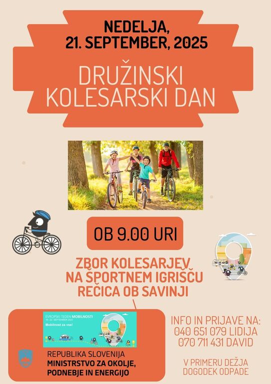 Družinski kolesarski dan (zbor kolesarjev na Športnem igrišču Mladost na Rečici ob Savinji, v sodelovanju z Športnim društvo Mladost)