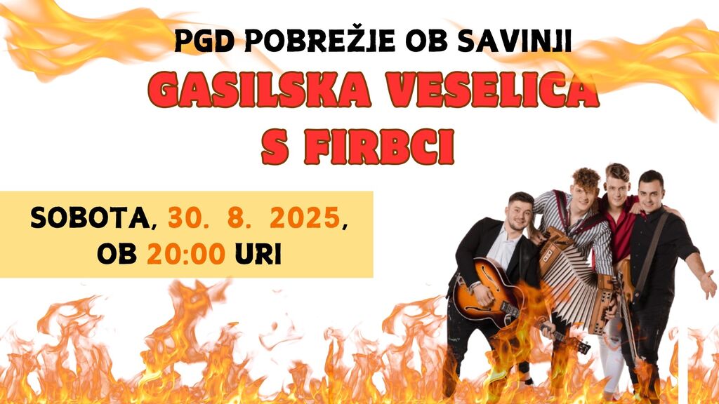 - PGD Pobrežje vabi na GASILSKO VESELICO S FIRBCI, ki bo v soboto, 30. avgusta, ob 20. uri, pred gasilskim domom na Pobrežju.