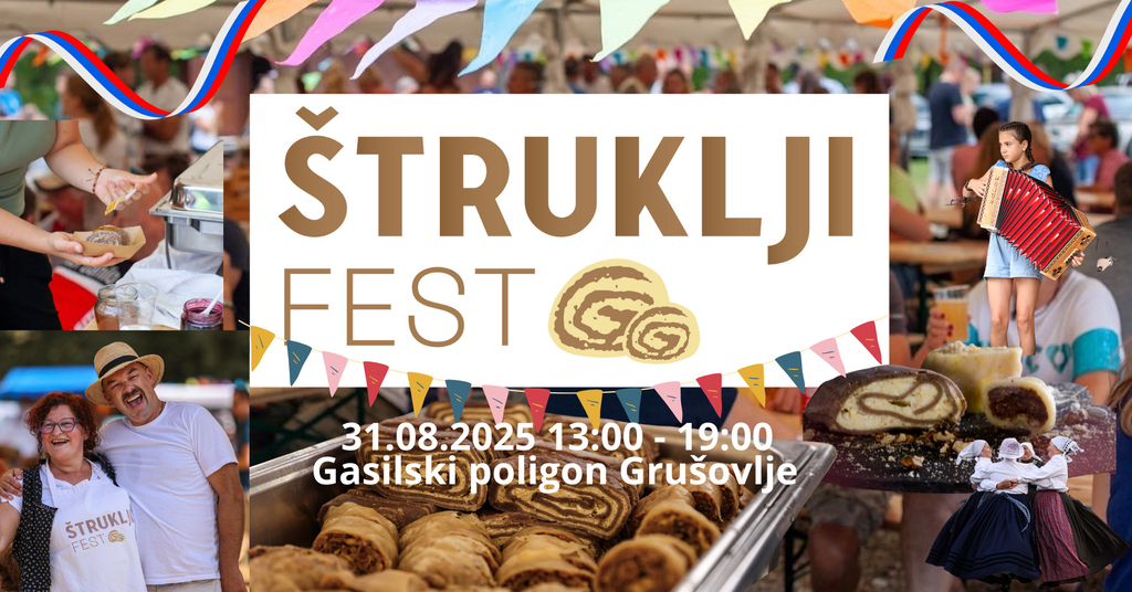 - Kulturno turistično društvo Bazilika, vabi na ŠTRUKLJIFEST, ki bo v nedeljo, 31. avgusta 2025, od 13. do 19. ure, na gasilskem poligonu v Šentjanžu.