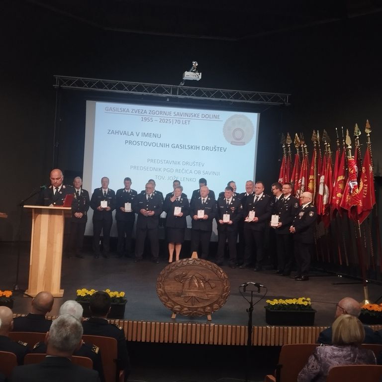 V Kulturnem domu Nazarje so v četrtek, 15. maja, na slavnostni akademiji počastili 70-letnico Gasilske zveze Zgornje Savinjske doline, ki združuje vseh 15 prostovoljnih gasilskih društev v dolini. Predsednik GZ Janko Žuntar je izpostavil zavidljivo sodelovanje občin, gospodarstva in gasilcev na našem območju. Poveljnik Gasilske zveze Slovenije Zvonko Glažar je poudaril plemenita dejanja slovenskega gasilstva, še posebej pa je pozdravil junake in heroje, ki so reševali življenja v poplavah. Ob jubileju se je GZ s simboličnim priznanjem – zlatimi plaketami - zahvalila vsem PGD, občinam ter sosednjim gasilskim zvezam. V imenu gasilcev se je za plakete zahvalil poveljnik Občinskega poveljstva Občine Rečica ob Savinji Jože Lenko, na akademiji pa so ob zaključku slovesno razvili nov prapor mladinske komisije.