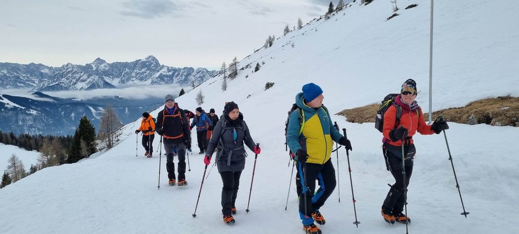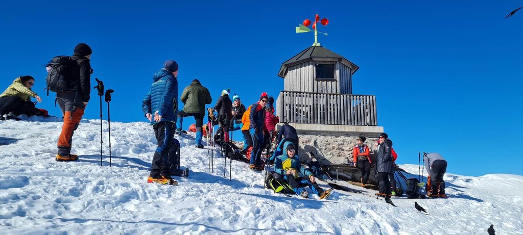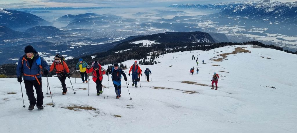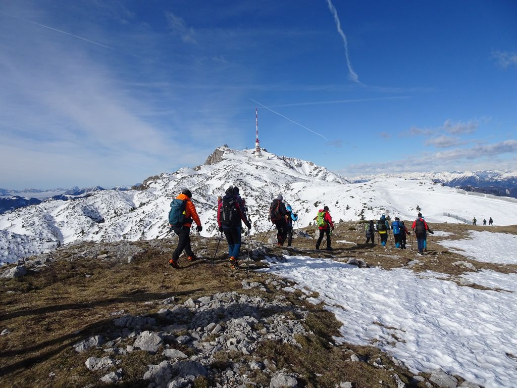 Tokrat nas je pot zanesla na avstrijsko Koroško, na goro Dobrač (2166 m). To je gora posebnosti, že razgled z njega je neverjeten. Verjetno ga ni enakega in lepšega na Julijske Alpe kakor ravno s te gore. Posebno veliko mitov je o velikem potresu leta 1348, posebno veliko votlin je v njem, pod njegovim vznožjem so termalni vrelci. Na goro pelje ena najlepših alpskih cest, zato je tudi posebno lahko dostopen dvatisočak. S komaj kakšne gore je še tako veličasten razgled na Koroško, pa tja čez njene meje, na sosednjo Slovenijo in Italijo. Dobrač je skrajno vzhodni izrastek Ziljskih Alp, stoji pa tam med rekama Ziljo in Dravo kot mogočen osamelec. O izvoru njegovega imena je več razlag. Po eni razlagi naj bi izviralo iz besede deber, kar pomeni ozko dolino s strmimi pobočji, po drugi iz dobrav, po tretji, najbolj romantični, pa naj bi pomenilo dobrega očaka. Niso pa se še odločili, katera razlaga je prava. Kakor koli že, razgledi danes so bili fantastični, vreme spomladansko, pohod pa še v zimskih razmerah. Sonce nas je prijetno grelo, omehčalo je tudi sneg, tako, da za vračanje nismo rabili derez. Naredili smo krožno pot, obiskali obe cerkvici in dolgo sedeli na vrhu ter občudovali prelepo panoramo okrog in okrog. Lep dan je za nami, hvala vsem za prijetno družbo in vabljeni spet na naše pohode. Varen korak vam želim.
