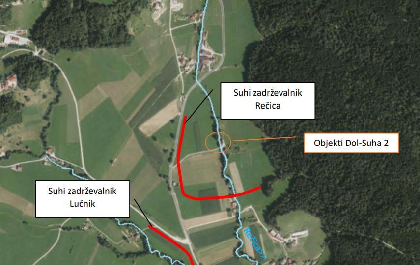 Med občani je veliko zanimanja za izvajanje protipoplavnih ukrepov na potoku Rečica. Osnutek hidrološko-hidravlične študije (objavljena je v prilogi) je bil izdelan pred lanskimi poplavami. Glede na razsežnosti iz lanskih poplav na gornjem delu potoku Rečica je bila preverjena umestitev dodatnega suhega zadrževalnika nad objektom Rečica ob Savinji 2 (v prilogi G.1 SZ Rečica grad_sit).