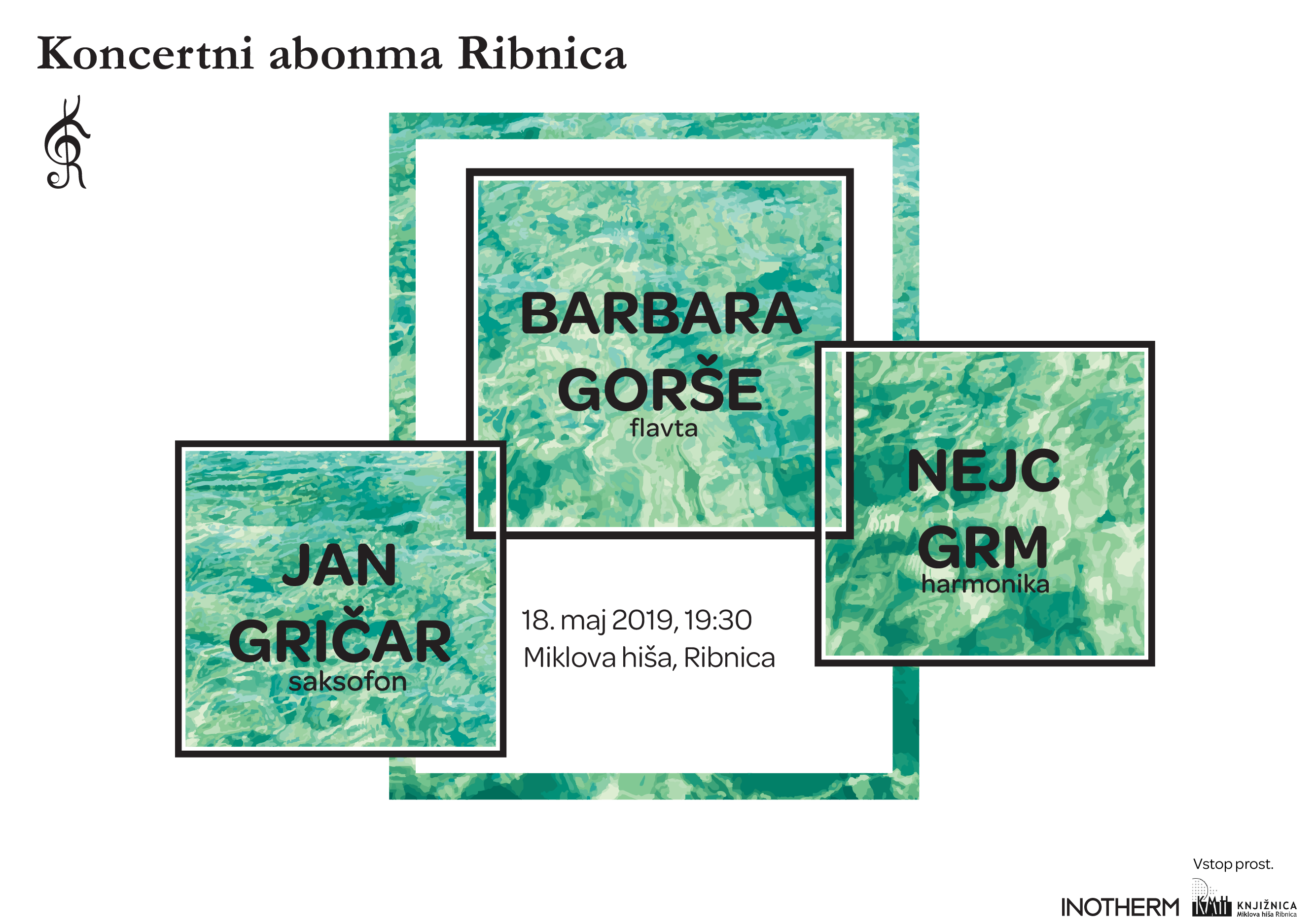»Vabljeni na koncert, ki bo v soboto, 18. 5. 2019, ob 19.30, v Miklovi hiši v Ribnici.