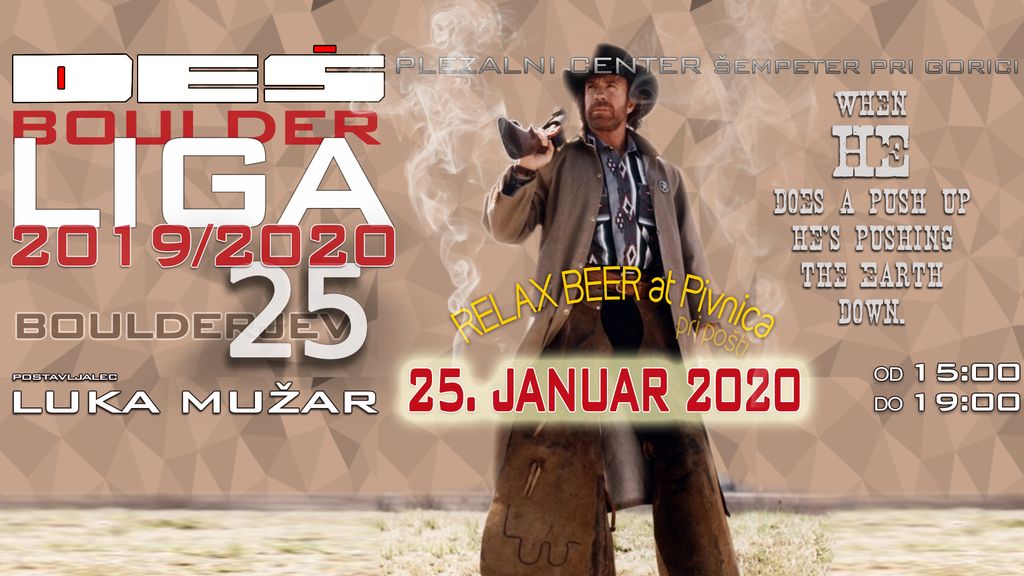 Vabljeni na tretjo tekmo DEŠeve boulder lige v sezoni 2019/2020. Tokrat postavlja smeri Luka Mužar.