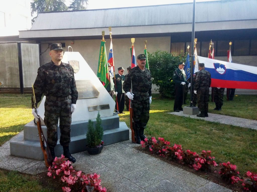 Dvig slovenske zastave ob obeležju braniteljem slovenske samostojnosti