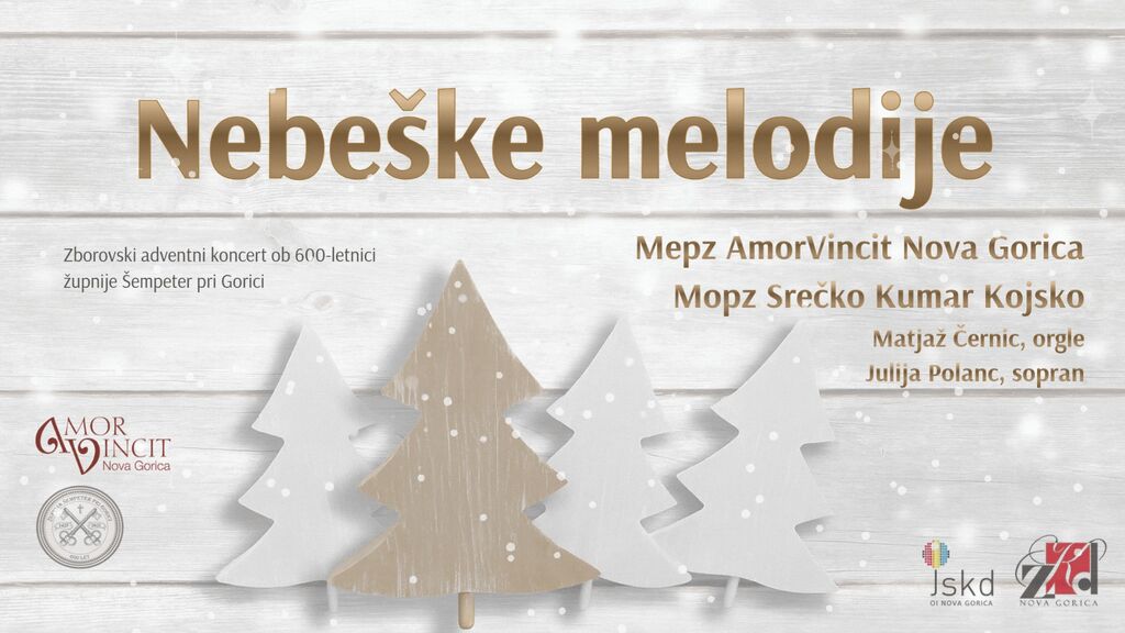 Nastopili bodo:MePZ AmorVincit in župnija Šempeter pri Gorici prirejata zborovski adventni koncert ob 600-letnici župnije Šempeter pri Gorici. Vabljeni, da z skupaj zakorakamo v praznični čas ob nebeških melodijah.Pridite