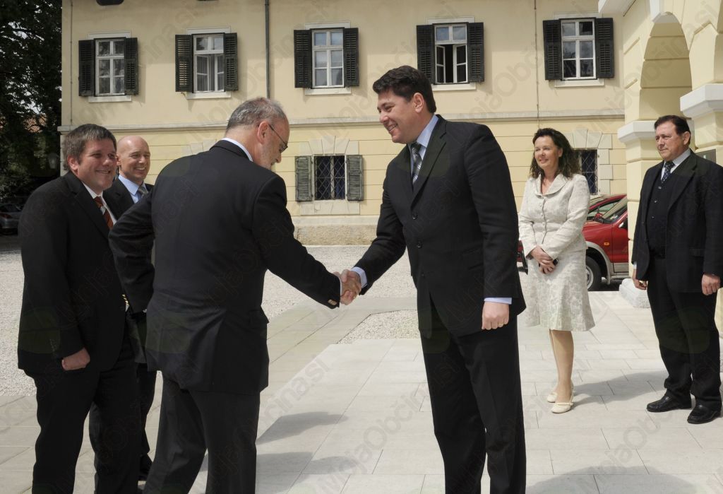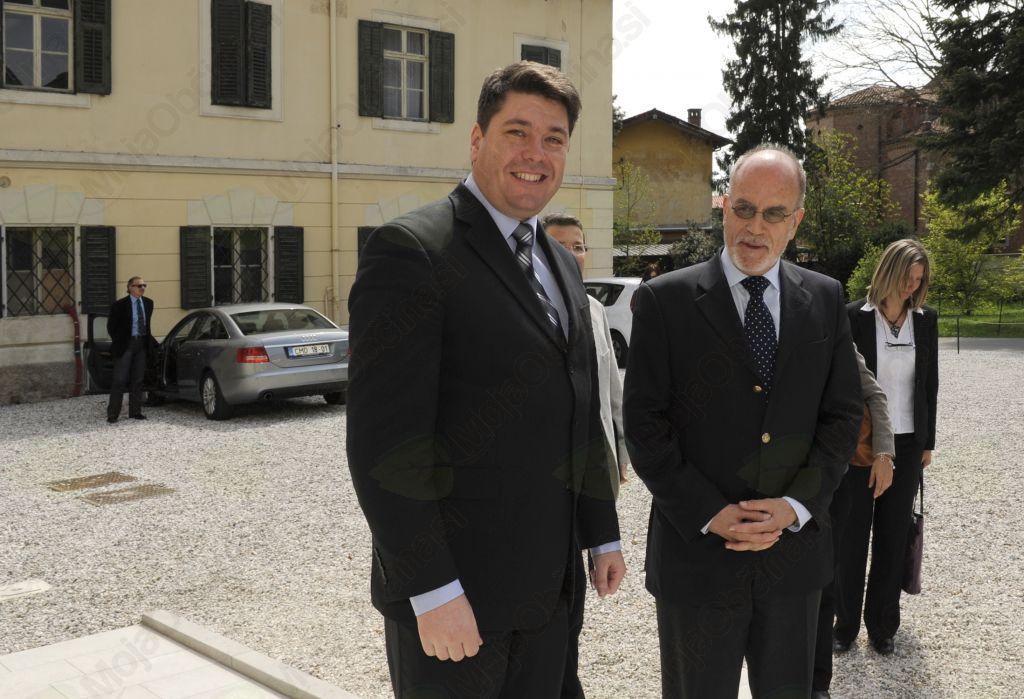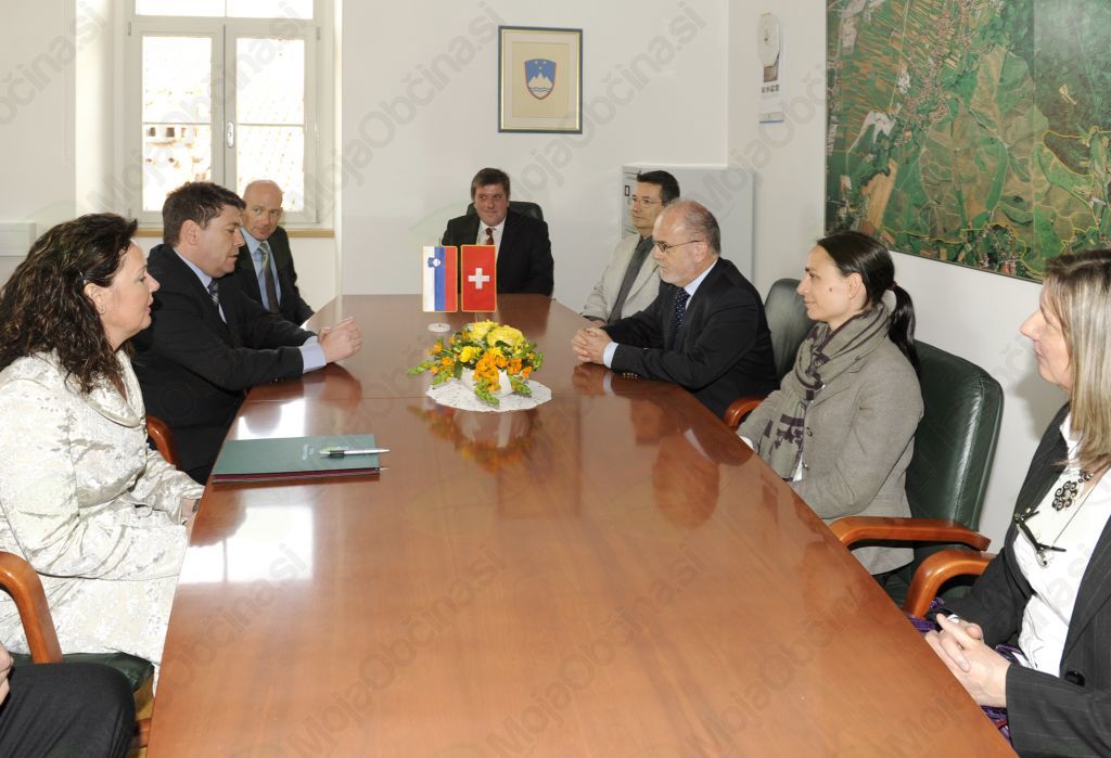 Šempeter pri Gorici, 18. 4. 2012 - Župan Občine Šempeter-Vrtojba, mag. Milan Turk, je danes v Coroninijevem dvorcu gostil veleposlanika Švice v Republiki Sloveniji N.E. gospoda Roberta Reicha, predstavnico Švicarskega prispevka (SECO) Barbaro Busser in predstavnico Nacionalnega koordinacijskega organa Švicarskega prispevka (MGRT) Darjo Remsko, ki so občino obiskali v okviru obiska projekta "Obnovljivi viri energije v primorskih občinah".