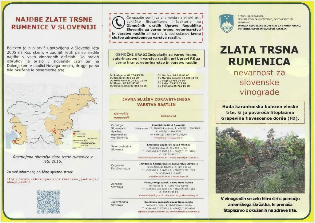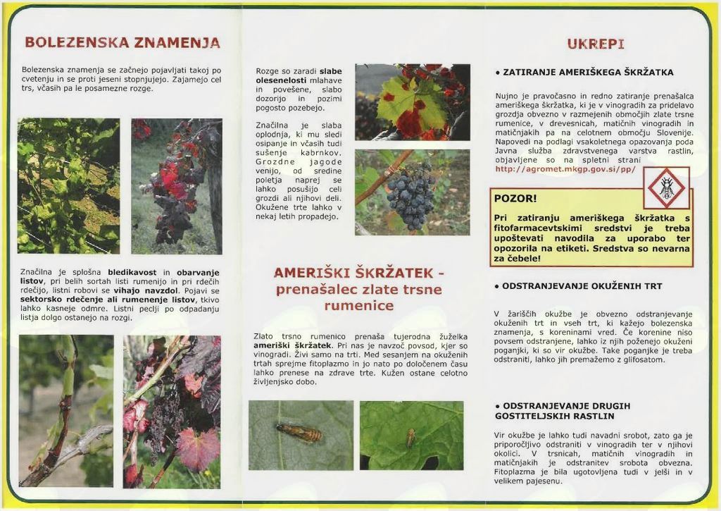 Več o zlati trsni rumenici lahko preberete na spletni strani UVHVVR http://www.uvhvvr.gov.si/si/delovna_podrocja/zdravje_rastlin/rastlinski_skodljivi_organizmi/.