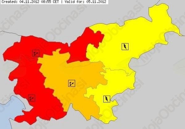 Agencija RS za okolje (Arso) je zaradi pričakovanih obilnih padavin razglasila najvišjo stopnjo ogroženosti - rdeči alarm.