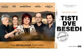 Za odrasle pa se bo ob 18. uri v Kulturni dvorani v Šempetru pričel družabni večer z naslovom »Tisti dve besedi«. 90-minutni družabni večer bo usmerjal in povezoval vodja programa Bojan Kodelja, znani gledališki igralec Iztok Mlakar pa bo preko video zaslona soustvarjal žlahtni humor v vlogi video interpreta. S strokovnjaki v živo se bodo udeleženci lahko pogovarjali o najbolj aktualnih družinskih temah, kot so medosebni odnosi, usklajenost starševskih vlog, postavljanje meja v vzgoji, različne oblike zasvojenosti, negativne informacije.