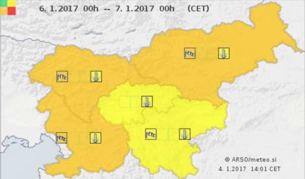 V notranjosti Slovenije in tudi na Primorskem v krajih brez burje (Goriška) bodo od petka do nedelje temperature ves dan ostale pod lediščem. Jutranje temperature bodo marsikje pod -10°C. V sredogorju in visokogorju bodo razmere ekstremne. Občutek mraza zaradi nizkih temperatur (-15 do -22°C) in vetra bo med -30 in -38°C.
