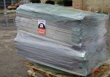 - Gradbeni material, ki vsebuje azbest – predvsem salonitno kritino – je treba naložiti na palete do 80 cm in oviti z embalažno folijo.