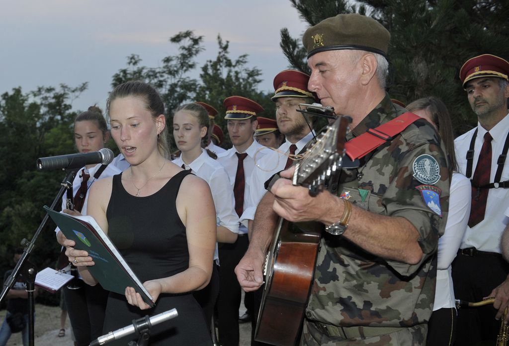 novo obeležje v spomin na vse tri zadnje vojne na našem območju, ki ga je nato blagoslovil vojaški duhovnik, namestnik vikar Slovenske vojske, gospod Milan Pregelj. Seveda je ob tem donela slovenska pesem iz grl pevcev Mešanega pevskega zbora Ciril Silič iz Vrtojbe. Protokolarni del slovesnosti so s kulturnim programom bogatili tudi glasbeniki Goriškega pihalnega orkestra ter vokalistka Julija Polanc in Dušan Bremec na kitari in orglicah. Slovesni utrip dogajanja na Sv. Otu pa je v svoj fotoaparat ujel Simon Zavadlav.