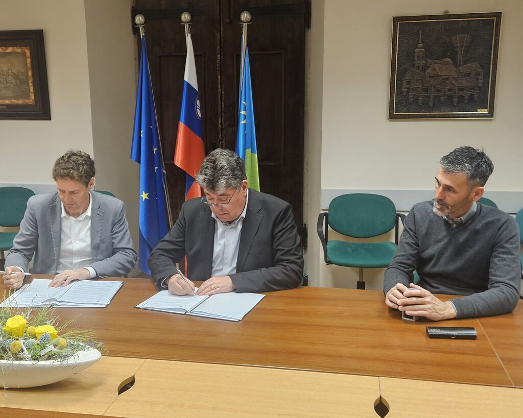 V sredo, 11. marca 2026, sta župan mag. Milan Turk in mag. Primož Ule, direktor podjetja Ginex International d.o.o., podpisala pogodbo za izvedbo gradbenih, obrtniških in instalacijskih del, ki so vezana na javno naročilo Prireditveni prostor v Vrtojbi.