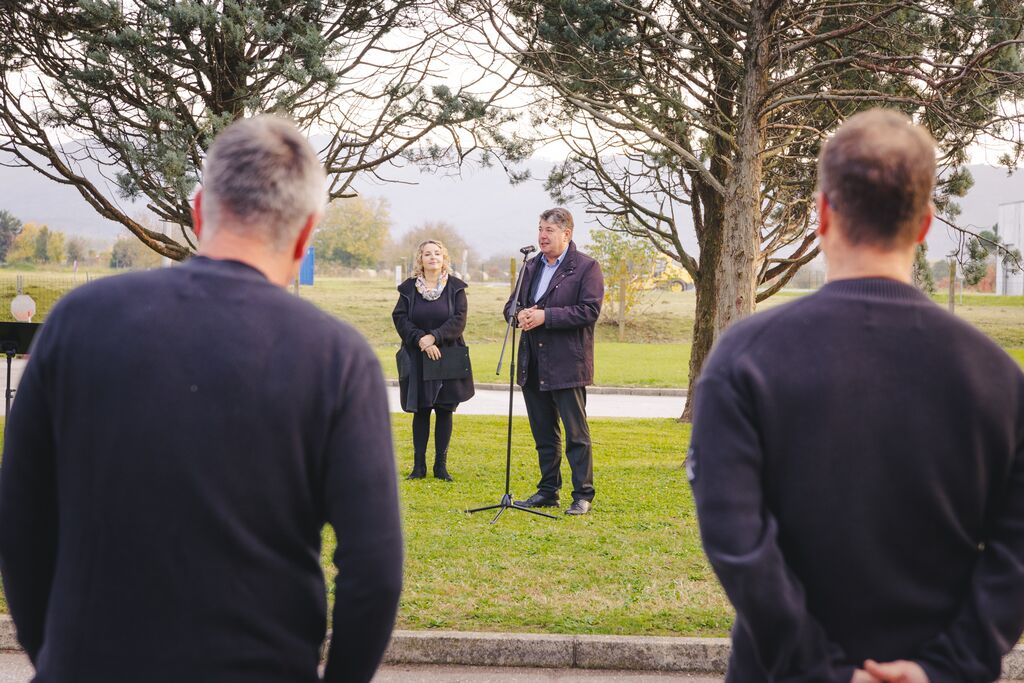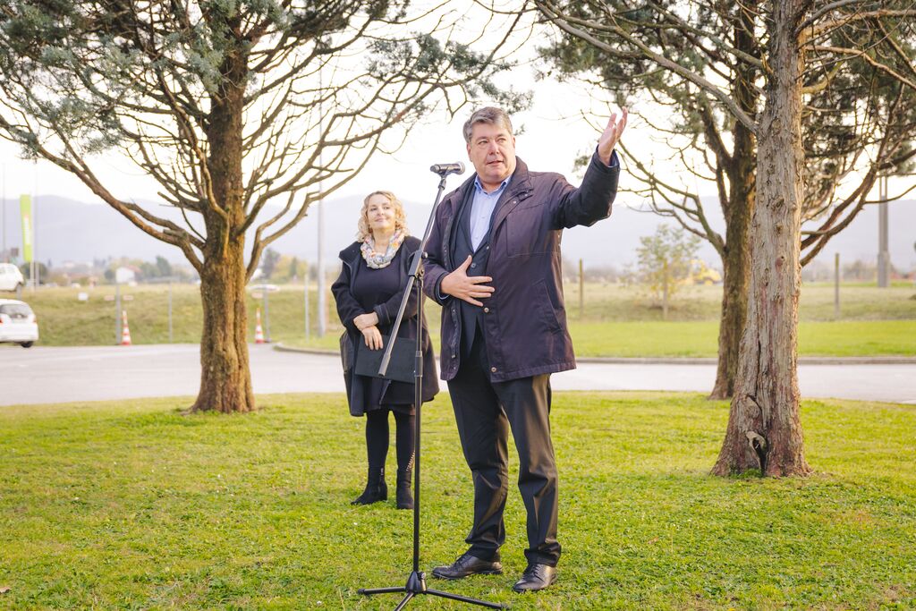 Gre za prvo od dveh skulptur, ki sta bili izbrani na mednarodnem natečaju. Ta je postavljena na slovenski strani, na italijanski strani pa je postavljena zmagovalna skulptura slovenskega kiparja Boštjana Kavčiča poimenovana Stičišče kultur, ki bo javnosti predana in predstavljena 21. novembra. Novo pridobitev na območju, ki ga je nedolgo nazaj v okviru istega projekta prenovila Občina Šempeter - Vrtojba, sta pozdravila tudi župan Milan Turk in upravitelj SDAG, Giuliano Grendene, kot predstavnik vodilnega partnerja projekta, sam dogodek pa sta glasbeno obogatila Matija Podbersič na trobenti in Jakob Leban na pozavni.