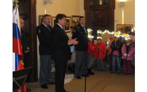 Šempeter pri Gorici, 6. december 2012 - V avli Coroninijevega dvorca je potekala zaključna prireditev likovnega natečaja in preventivne akcije na temo »Varno na poti v šolo in domov«, ki jo je tudi letos organizirala in izvedla Policijska uprava Nova Gorica za učence nižjih razredov severnoprimorskih osnovnih šol. Zaključno prireditev likovnega natečaja v Šempetru pri Gorici z otvoritvijo razstave nagrajenih likovnih del pa je Policijska uprava Nova Gorica pripravila skupaj z Občino Šempeter-Vrtojba, Svetom za preventivo in vzgojo v cestnem prometu Občine Šempeter-Vrtojba in Osnovno šolo Ivana Roba iz Šempetra pri Gorici.