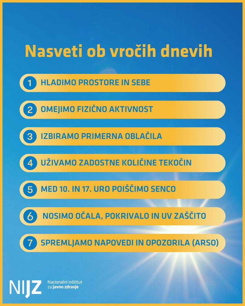 Vsa gradiva so na voljo na spletni strani NIJZ: https://nijz.si/moje-okolje/podnebne-spremembe/napotki-prebivalcem-za-ravnanje-v-vrocih-dneh/