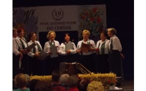 V soboto 21.5.2016 smo pevke ljudskih pesmi DU Ceršak obeležile deseto obletnico obstoja s prvim lastnim koncertom, ki je potekal v dvorani KS v Ceršaku. Naša skupina se je ustanovila v marcu 2006. Prvi naš javni nastop je bil na našem zboru članov. Ko so nas slišali povabljeni gostje iz sosednjih društev, so bili nad nami zelo navdušeni in so nas takoj povabili, da zapojemo še na njihovih zborih. Ko so nas slišali pevci ljudskih pesmi KUD Gabrijel kolbič, so nas takoj nagovorili, naj se udeležimo tudi Revije ljudskih pevcev in godcev, ki ga prireja JSKD občin Pesnica Kukngota in Šentilj. Zbrale smo pogum in se prijavile in prvi naš nastop na tej reviji je bil v Jakobu. Od takrat se te revije udeležujemo vsako leto. Prav tako se udeležujemo revije Večer ljudske glasbe in petja, ki ga prireja Zgornje pokrajinska pokrajinska zveza DU Maribor. Prepevale smo že na raznih prireditvah v okviru Občine Šentilj, pa tudi izven nje. Sodelovale smo v radijski oddaji "večer na vasi" radia Lenart, pa v Mariboru na prireditvi "POD BRAJDAMI", ki jo je organikziralo Turistično društvo GLAS iz Studencev in na odprtem odru na Trgu Leona Štuklja, kam nas je povabil gospod Dušan Hedl. V ljubljani v Cankarjevem domu pa smo zastopale Zgornje podravsko pokrajinsko zvezo DU Maribor na Festivalu za tretje življenjsko obdobje. To pa je bil poseben dogodek za nas, morale smo kar zbrati pogum in se podati v Ljubljano. Ampak smo dobro odpele in bile lepo sprejete. Ob koncu leta pa vedno zapojemo v Domu Danice Vogrinec v Maribor vsem varovancem iz Šentiljske občine. Skratka rade se odzovemo vsakemu povabilu, predvsem pa rade pojemo za svojo dušo, saj si s tem lepšamo dneve v jeseni življenja. Trudimo se ohranjati naše staro ljudsko izročilo, da ne bo šlo v pozabo. Sedaj po desetih letih obstoja nam je uspelo tudi izdati našo prvo zgoščenko in prirediti naš jubilejni koncert. Da pa smo naš koncert popestrile, smo v goste povabile tudi pevce ljudskih pesmi KUD Gabrijel Kolbič iz Zg. Velke, Mešano pevsko skupino iz Sv. trojice in Ljudske pevce in godce "POSUŠENE LEFKE" iz Zg. Velke. Ker je bil to naš prvi koncert, smo bile malo na trnih. Ampak moram povedati, bile smo pohvaljene s strani predsednice ZKD Pesnica gospe Franje Senčič,katera nam je tudi podelila priznanje JSKD, gospoda Alojza Kristla, predsednika sveta Javnega sklada za kulturne dejavnosti občin Pesnica, Kungota in Šentilj, ki nam je podelil Maroltove značke, pa seveda od povabljenih gostov in poslušalcev, ki so se v res velikem številu udeležili koncerta. Na koncertu smo zapele dvanajst ljudskih pesmi gostje pa vsak po tri pesmi. Bile smo zelo zadovoljne in vesele, da nam je to uspelo izvesti. Za pomoč pri izvedbi koncerta pa smo seveda prosile tudi razne ustanove, da nam z doniranimi sredstvi pomagajo. Zato bi se rada sedaj v imenu vseh pevk zahvalila vsem donatordjem, ki so nam na kakršen koli način pomagali in sicer: Občini Šentilj, Zgornje podravski pokrajinski zvezi DU Maribor, Zvezi kulturnih društev Pesnica, posebna hvala gospe Sabrini, ki nam je ogromno pomagala pri sami izvedbi koncerta, Našemu društu upokojencev, gospodu Dušanu Hedlu za pomoč pri izdaji zgoščenke, vsem, ki so karkoli prispevali za pogostitev na samem koncertu, našim pridnim gospodinjam, ki so spekle ogromno dobrot, vsem poslušalcem, za dane prostovoljne prispevke, posebej pa bi se rada zahvalila naši "deklici za vse" gospe Mariji Ferlinc za pomoč na snemanju zgoščenke in na samem koncertu. vsem in vsakomur še enkrat Velika HVALA.