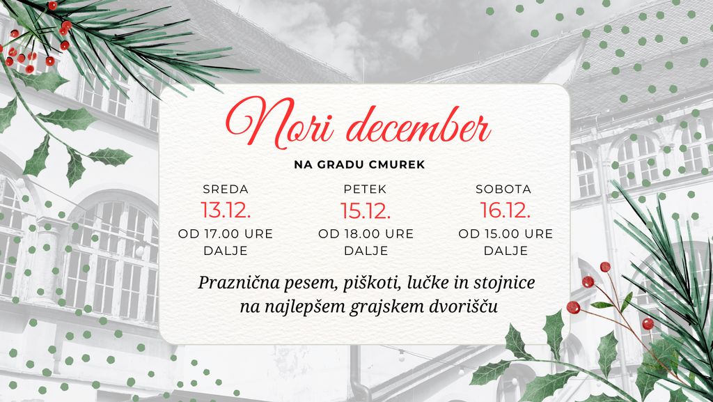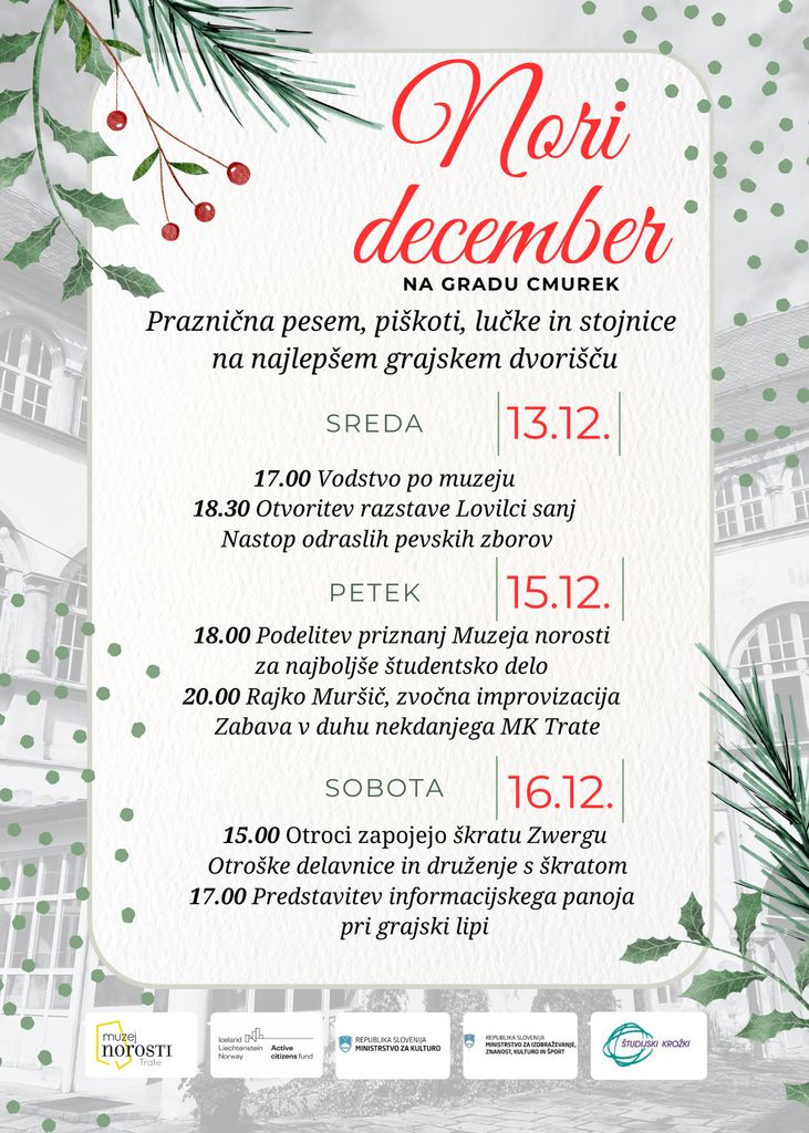 Letošnji nori december bo trajal kar tri dni, v sredo 13.12, v petek 15.12 in v soboto 16.12, ko še posebej vabimo najmlajše obiskovalce.