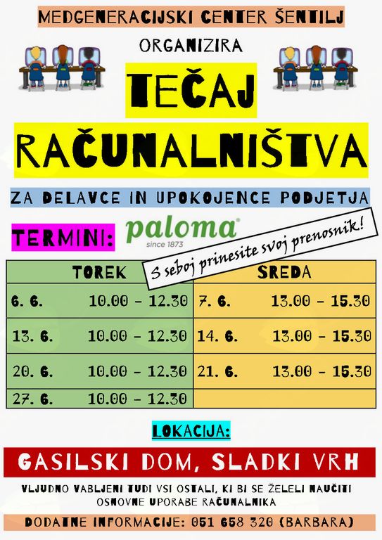 Spoštovani, vabimo vas na tečaj računalništva, ki ga organizira Medgeneracijski center Šentilj!