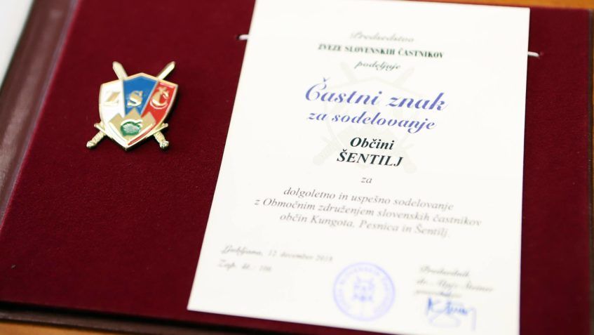 OBČINA ŠENTILJ PREJELA ČASTNI ZNAK ZVEZE SLOVENSKIH ČASTNIKOV