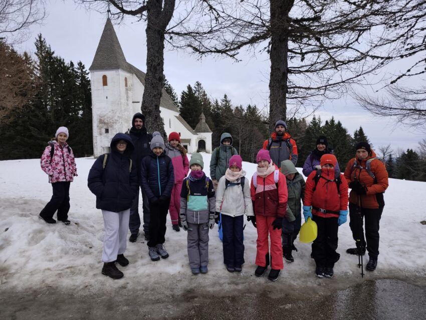 V soboto, 24. 1. 2026, smo izvedli 2. planinski pohod za učence, ki obiskujejo planinske krožke na osnovnih šolah Rudolfa Maistra Šentilj in Jakobski Dol. Ob 8.30 smo se zbrali pri spodnji postaji Pohorske vzpenjače ter se z gondolo odpeljali do Belvija, kjer smo začeli s pohodom. Najprej smo se po zaledeneli poti prebili do Mariborske koče (1074 m), kjer smo si vzeli čas za malico. Nadaljevali smo proti Ruški koči na Arehu (1251 m). Pot je bila zdaj lepša, hodili smo večinoma po snegu in si vzeli čas tudi za sankanje in kepanje ter uživanje v razgledih na zasneženo pokrajino. Na Ruški koči je sledil daljši počitek za kosilo in igre na snegu. Na izhodišče smo se vrnili po zgornji poti mimo razglednega stolpa in zgornjo postajo Pohorske vzpenjače dosegli ob 15.30, ko so začele padati prve kaplje dežja. Skupaj smo hodili 5 ur. Izleta se je udeležilo 13 otrok in 3 odrasli spremljevalci, ki sva jih spremljali mentorici Nana Gačar in Jasna Potisk.