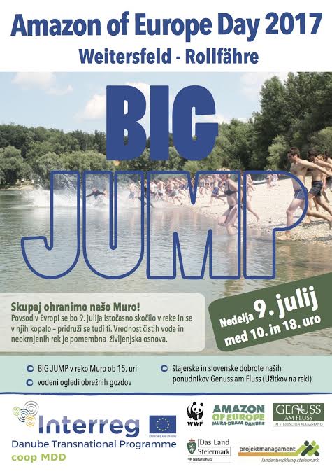 Povsod po Evropi se bo v nedeljo, 9. julija 2017, ob 15. uri, skočilo v reke. V naši občini bomo dogodek obeležili s skokom v Muro, in tako še enkrat opozorili na pomen varovanja te naše velike in bogate reke.