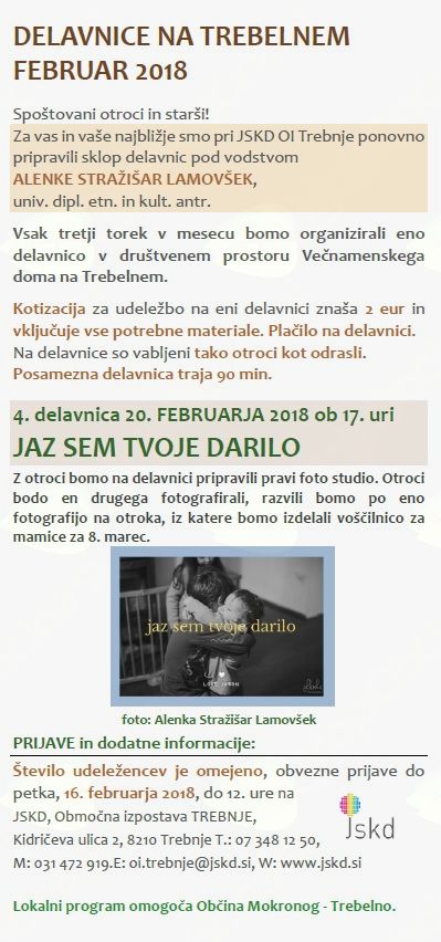 Za vas in vaše najbližje smo pri JSKD OI Trebnje ponovno pripravili sklop delavnic pod vodstvom
