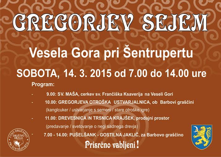 Vabljeni na tradicionalni Gregorjev sejem na Veselo Goro, ki bo v soboto 14. marca 2015 od 7.00 do 14.00 ure.