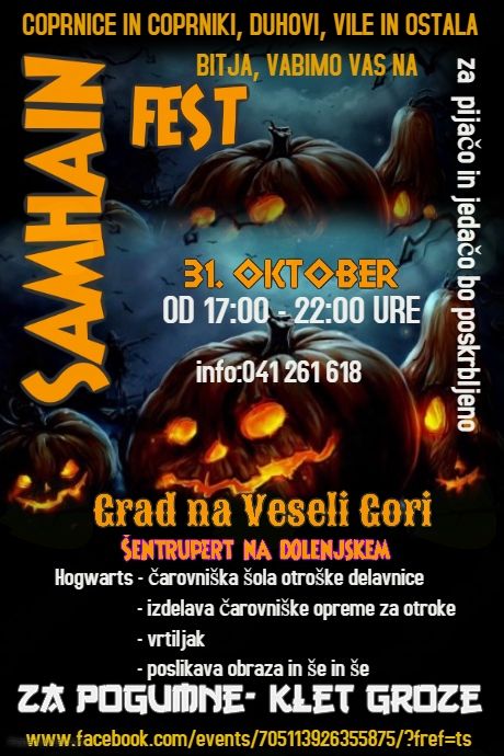 Delavnica izdelave čarovniških pokrival, čarovniških ogrinjal, čarovniških palic in metel, Kratke Dolenjske pravljice, Čarovniški ples okoli ognja, Čisto pravo vedeževanje, Čarovniški vrtiljak, Nočno lokostrelstvo in metanje sekir v tarčo, sladka pajčevina in seveda grajska klet groze.