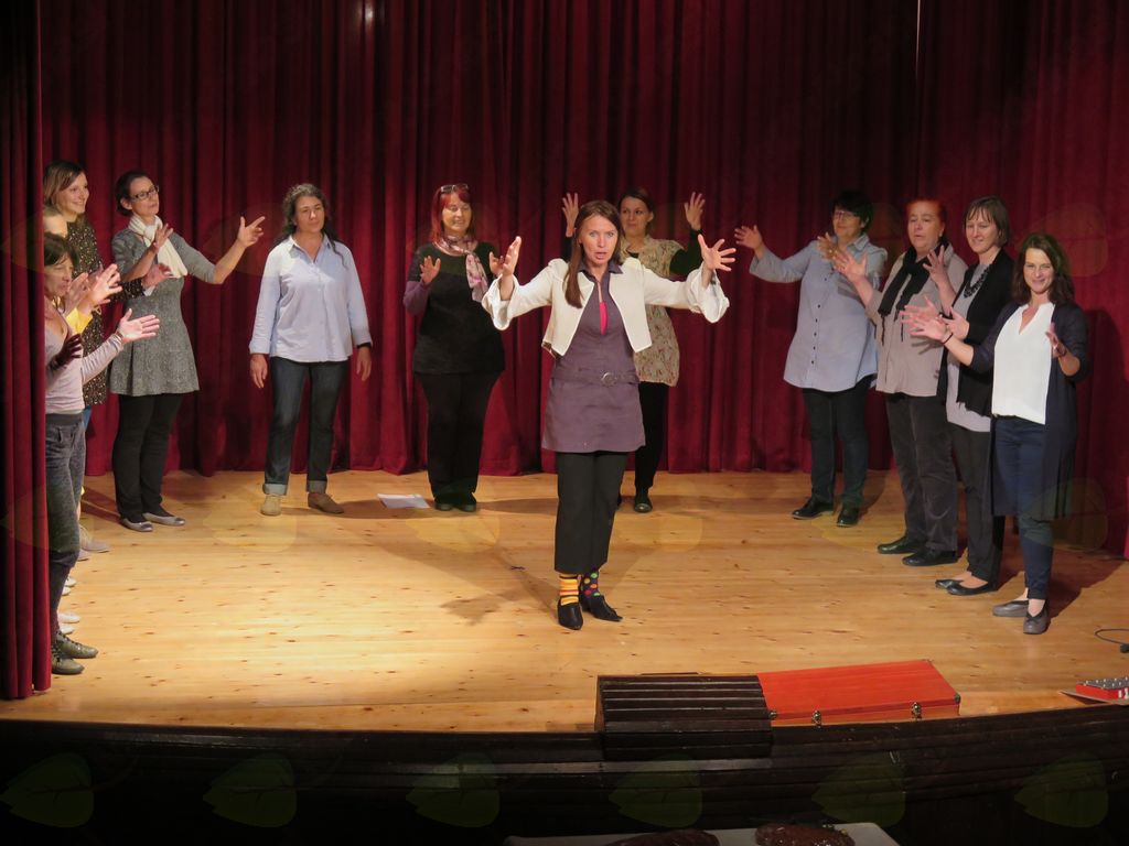 V prvem delu večera so se predstavili udeleženci delavnice z mentorico Ljobo Jenče s pripovedovanjem dveh pravljic iz zakladnice slovenskih pravljic o vilah in pastirčku.