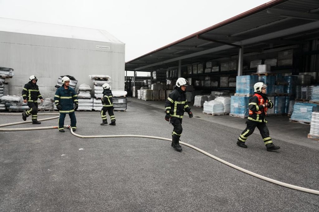 Gasilci so gasili namišljen požar, reševali zaposlene in dobavljali vodo za gašenje ter druge operativne naloge gasilstva.