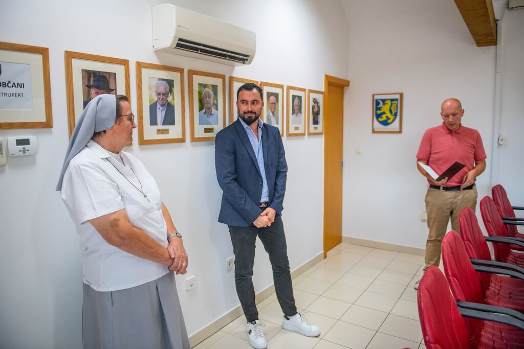 Portretom častnih občanov, ki krasijo sejno sobo občinske uprave, se je v sredo, 3. septembra pridružil še portret s. Zvonke Mikec, ki je častna občanka postala na predlog župana Šentruperta Tomaža Ramovša.