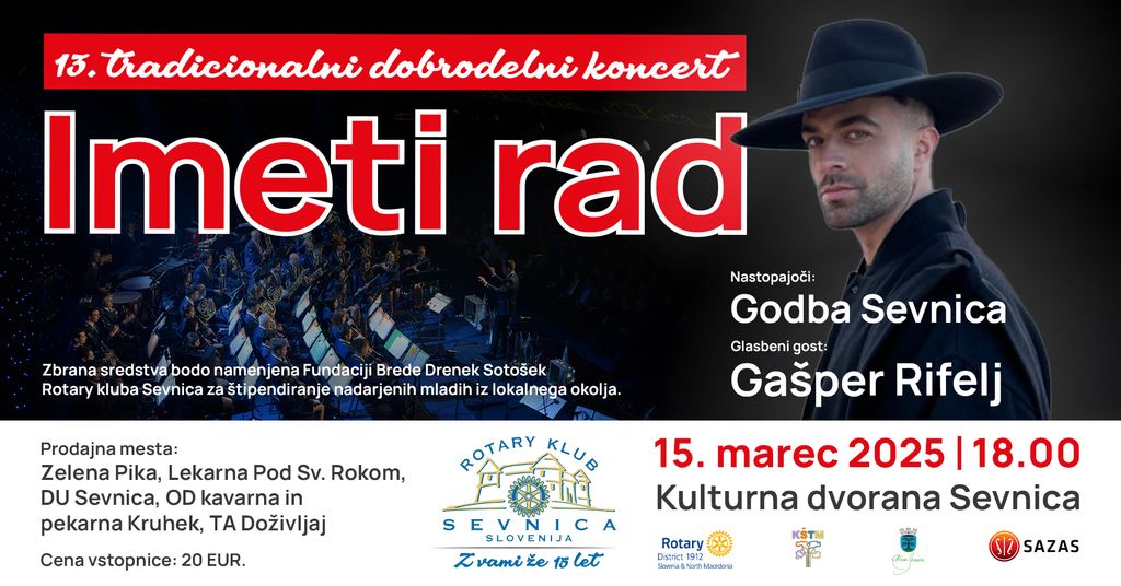 dobrodelni koncert "IMETI RAD" v soboto, 15. marca 2025 ob 18.00 v