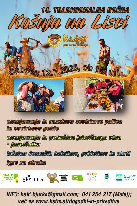 Vabljeni vsi k aktivni udeležbi, kot kosec, grabljica, klepač kose ali kot udeleženec/udeleženka ocenjevanja jabolčnika ali ocvirkovke!