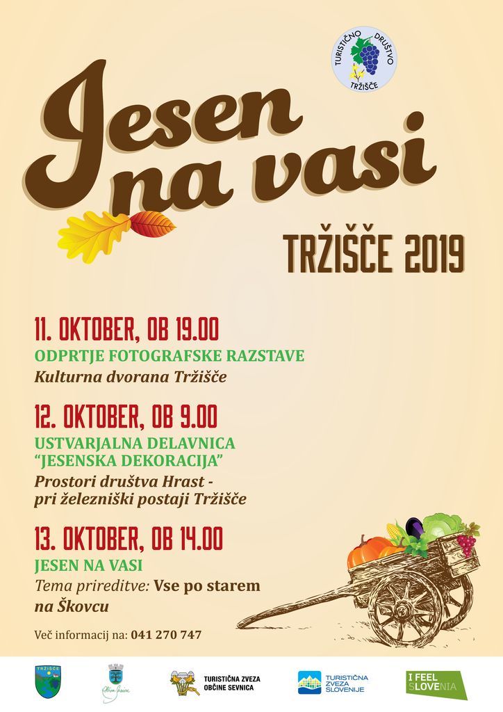 Turistično društvo Tržišče prijazno vabi na fotografsko razstavo v Tržišču v sklopu že tradicionalne prireditve Jesen na vasi. Dobimo se v petek, 11. oktobra ob 19. uri v Kulturni dvorani v Tržišču, kjer bo najprej potekal kratek kulturni program, potem pa sledi razglasitev najboljših fotografij tega leta.
