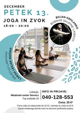 V petek, 13. decembra, se obeta prav poseben dogodek v Večgeneracijskem centru Posavje+, enota Sevnica (Mladinski center Sevnica). Društvo Lariyoga v sodelovanju z Bojanom Krhlankom, bobnarjem legendarne skupine Laibach, prireja dvourno joga delavnico z naslovom "Petek 13: Joga in zvok".