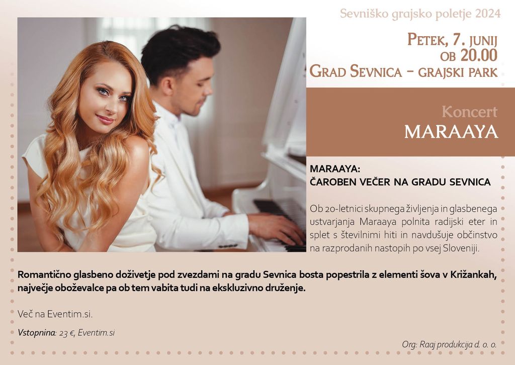 Ob 20-letnici skupnega življenja in ustvarjanja Maraaya osvajata publiko s številnimi hiti. Nastop pod zvezdami na gradu Sevnica 7. junija bosta popestrila z elementi velikega koncerta v Križankah, največje oboževalce pa vabita tudi na ekskluzivno druženje.