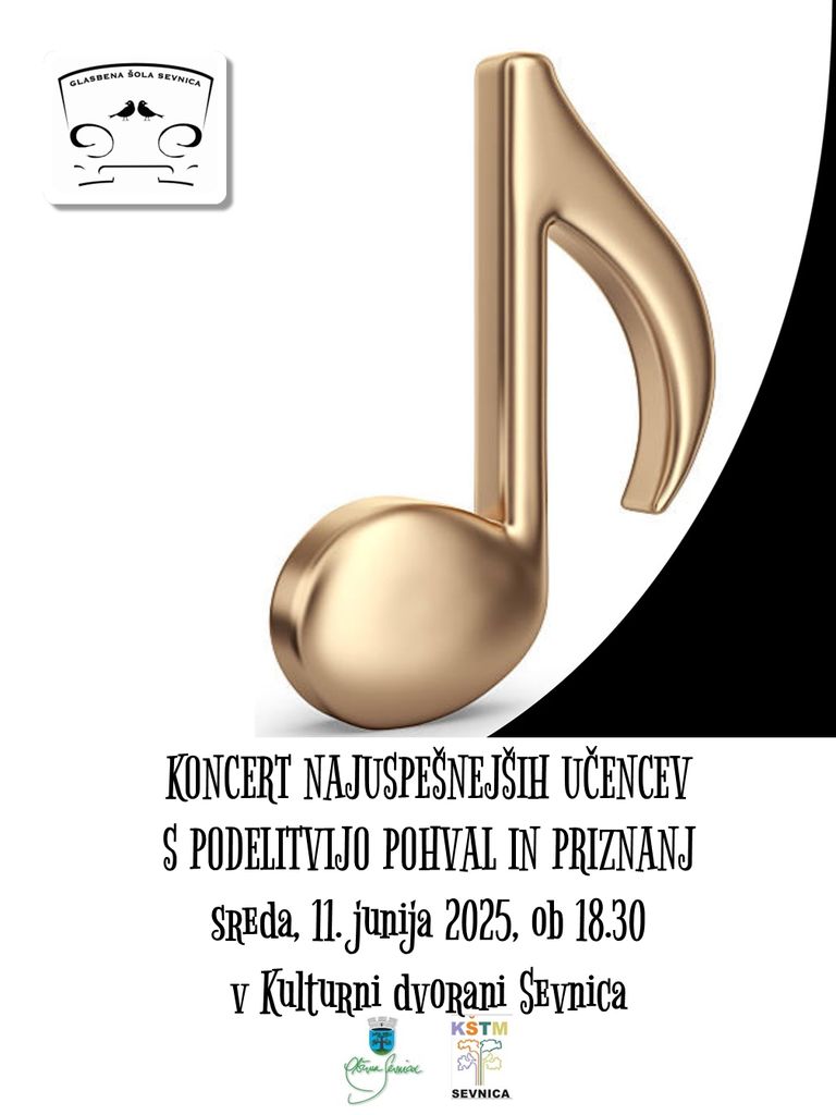 Glasbena šola Sevnica vljudno vabi na koncert, na katerem se bodo predstavili najuspešnejši učenci šolskega leta 2024/2025.