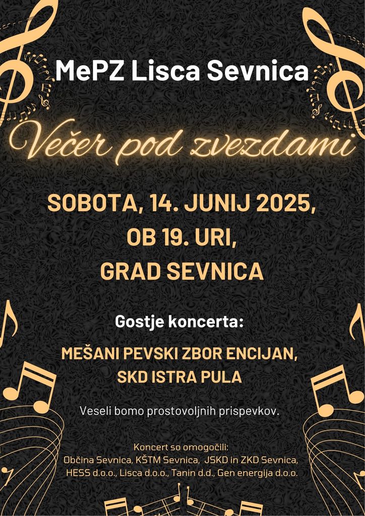 V okviru grajskega poletja KD MePZ LISCA SEVNICA organizira skupni koncert z MePZ ENCIJAN SKD ISTRA iz PULE.