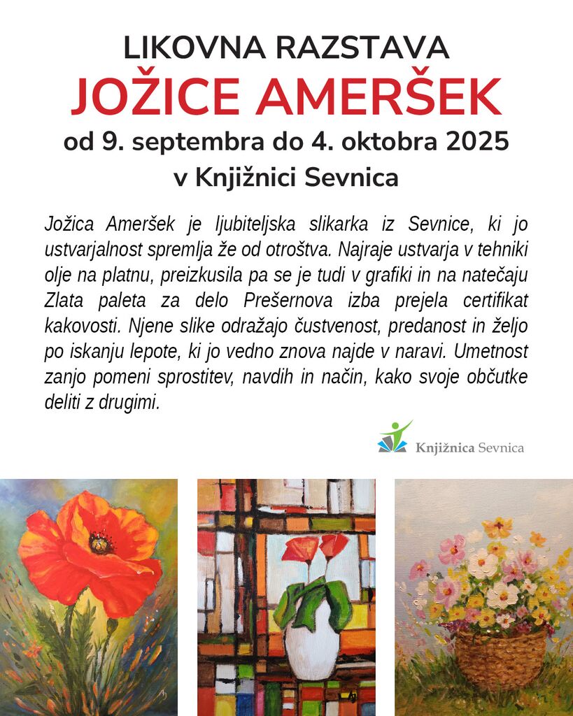 Vljudno vabljeni na ogled likovne JOŽICE AMERŠEK.