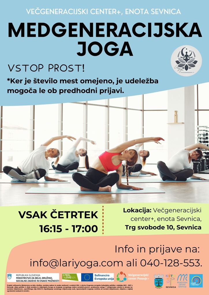 Vabljeni na brezplačno medgeneracijsko jogo, kjer se srečajo različne generacije v sproščenem in prijetnem vzdušju. Vadba je prilagojena vsem starostim in telesnim zmožnostim, poudarek pa je na nežnem gibanju, dihu, ravnotežju in dobrem počutju.