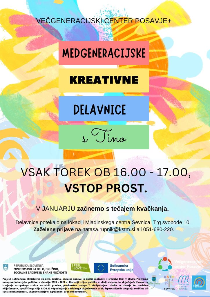 Vabljeni na medgeneracijske kreativne delavnice s Tino v Večgeneracijski center Posavje+, enota Sevnica. Vstop je prost.