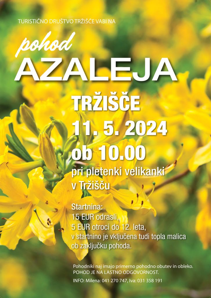 Prisrčno vabljeni v Tržišče, kjer bomo s štartom ob 10. uri pri pletenki velikanki, začeli tradicionalen pohod na Vrhek, k rastišču azaleje oz. rumenega sleča.