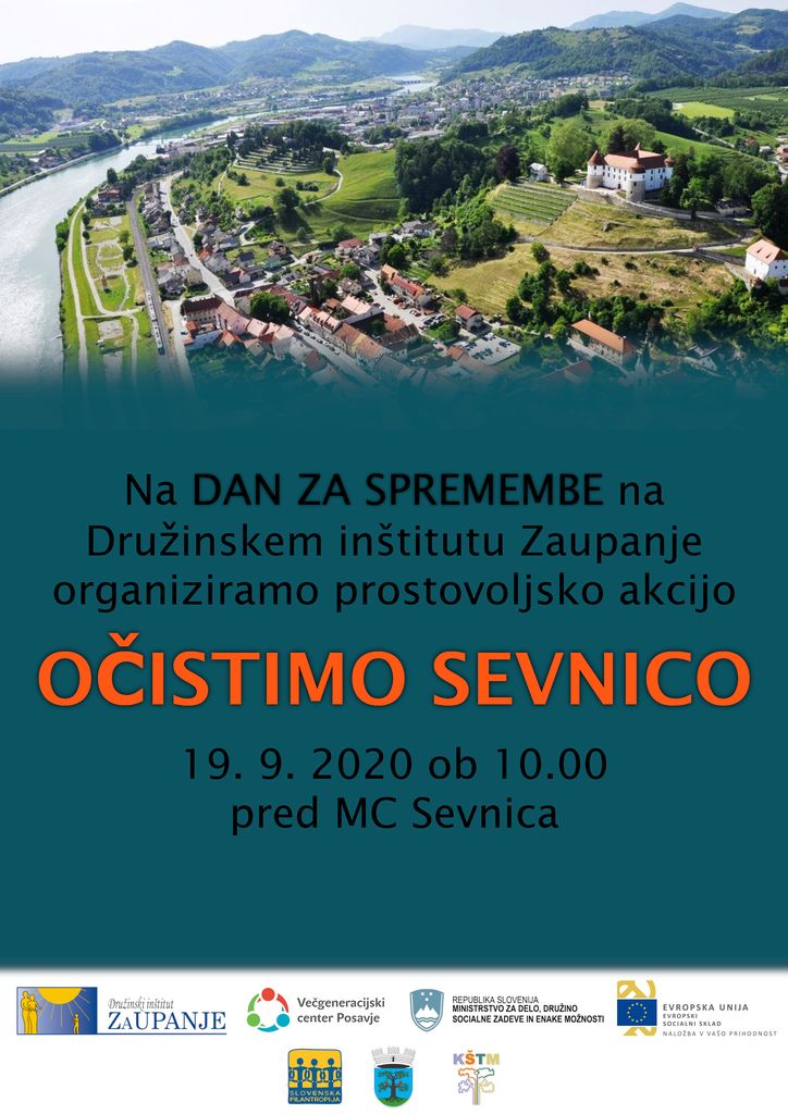 Na letošnji Dan za spremembe bodo na Družinskem inštitutu Zaupanje v okviru programa Večgenracijski center Posavje organizirali prostovoljsko akcijo »Očistimo Sevnico!« Slogan letošnjega dneva za spremembe, ki ga na nacionalni ravni organizira Slovenska filantropija, je »Ne prepuščaj se toku, SPREMINJAJ tudi TI!«
